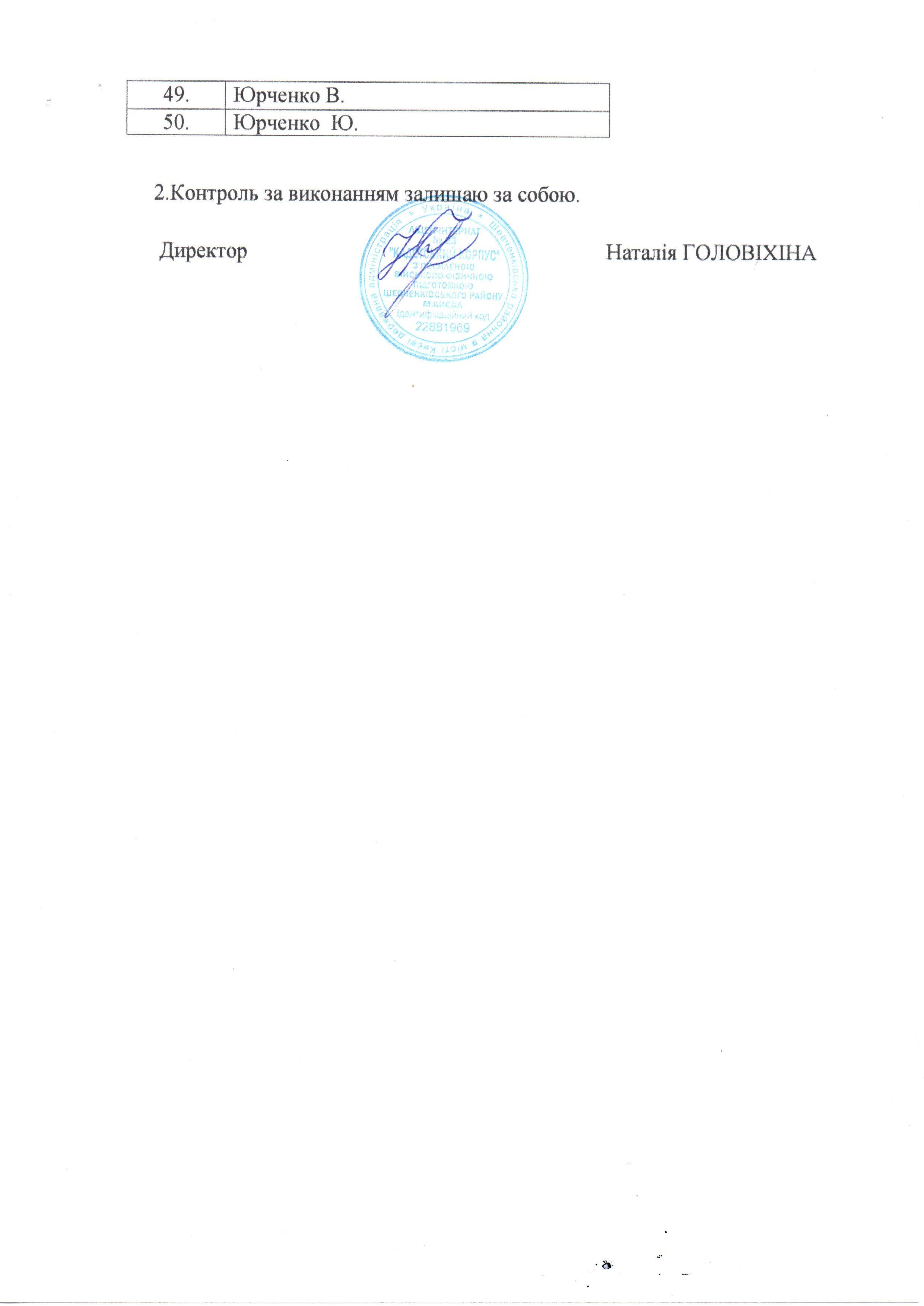 1. Зарахувати до 1-х класів, за умови надання до 20.08.2024н.р. оригіналів документів та довідок зі шкіл за місцем реєстрації про те, що вони не зараховані на навчання, таких учнів: