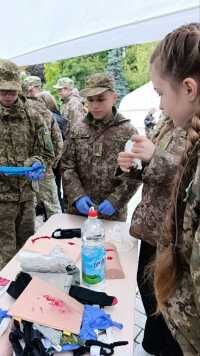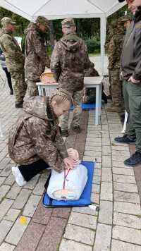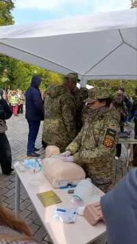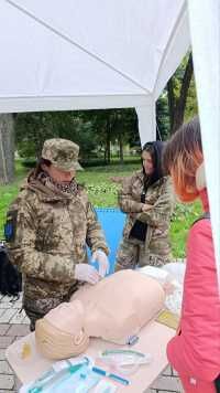 Учні Ліцею №23 «Кадетський корпус» імені Володимира Великого — кадети та паняночки — разом із досвідченими інструкторами Центру тактичної медицини «Схід» та військовими медиками Окремої президентської бригади демонструють та навчають усіх охочих життєво важливим навичкам серцево-легеневої реанімації (СЛР).