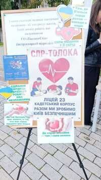До Міжнародного 25-го Дня серця кадети Державного ліцею №23 спільно з інструкторами Центру тактичної медицини провели в центрі Києва "СЛР-толоку" - відкриті тренінги для киян з навчання техніки серцево-легеневої реанімації. Також усім охочим школярі вимірювали артеріальний тиск та пульс.