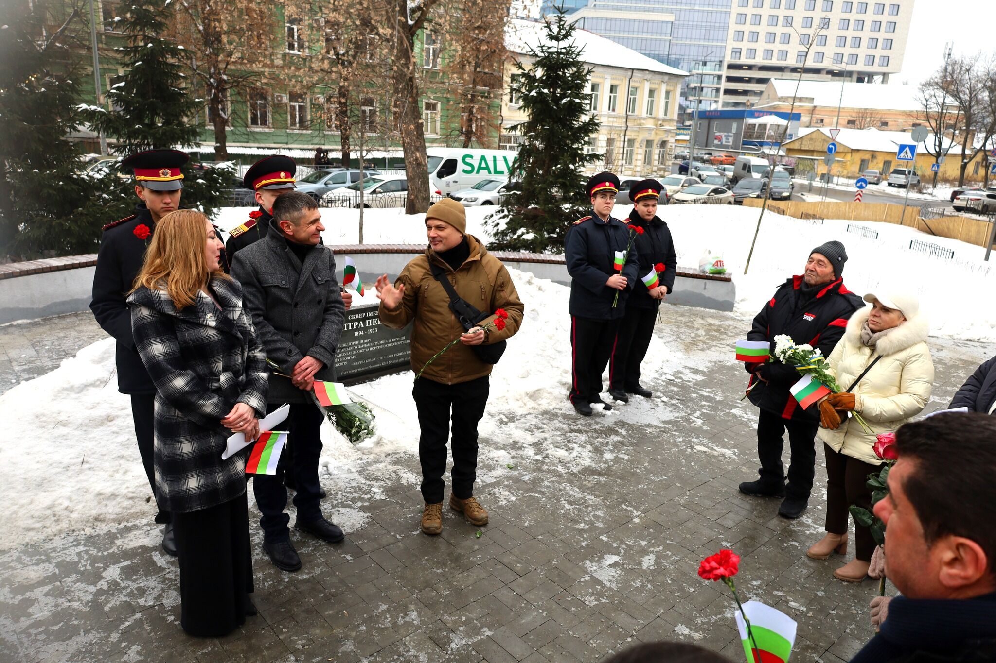 На початку заходу пролунали гімни України і Болгарії. Після цього відбулося покладення квітів до пам’ятного знаку на честь Дімітра Пешева.
