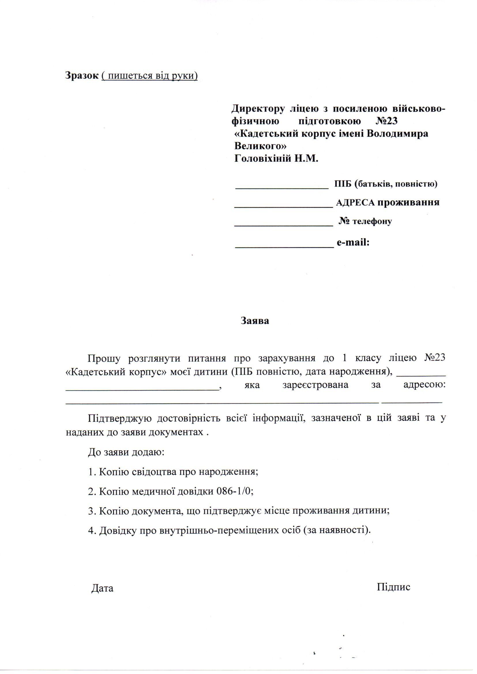 або в електронний спосіб на пошту ліцею liceykadet23@kyivcity.gov.ua