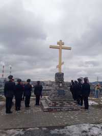 В почесній варті вишикувались кадети ліцею № 23 "КАДЕТСЬКИЙ КОРПУС" імені Володимира Великого. Священник відслужив молебень в пам'ять про загиблих героїв.